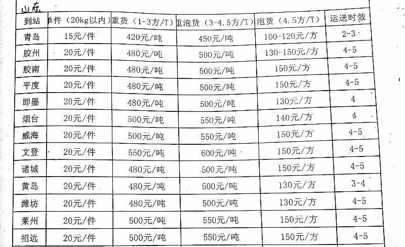 成都到煙臺物流專線價格: